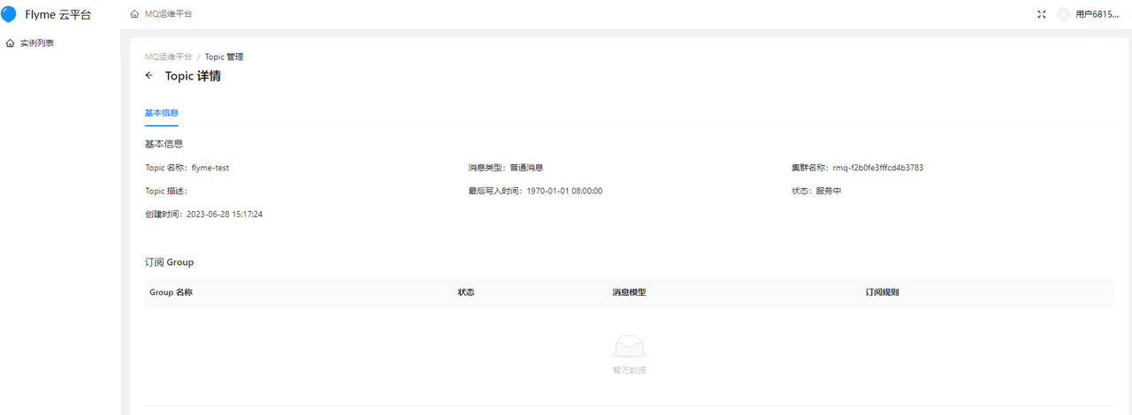 - 在 https://www.flymeyun.com/#/product/mq/index 页面点击管理控制台进入控制台页面
